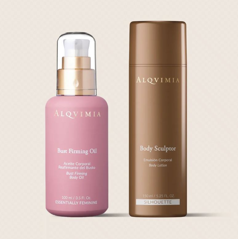 Dos Best Sellers de ALQVIMIA, el Aceite corporal Reafirmante del busto Bust Firming y la Emulsión corporal Body Sculptor, para que reafirmes tu cuerpo y tu pecho.