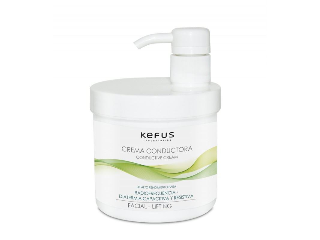 Crema conductora facial lifting Kefus de alto rendimiento para terapias de radiofrecuencia y diatermia capacitiva - resistiva. Reduce la resistencia de la piel al paso de la corriente eléctrica, lubrica, hidrata y facilita el deslizamiento del electrodo. Provoca un efecto tensor rápido y duradero, con desaparición o atenuación pronunciada de arrugas y líneas de expresión.