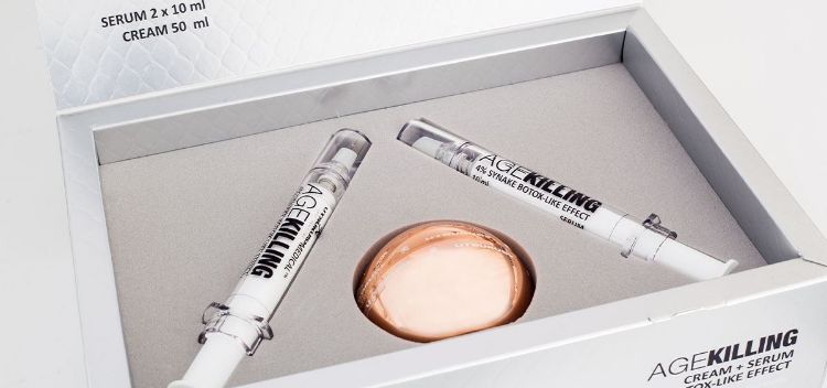 Set que contiene crema Agekilling de 50 ml y 2 Jeringas Agekilling de 10 ml con aplicador.